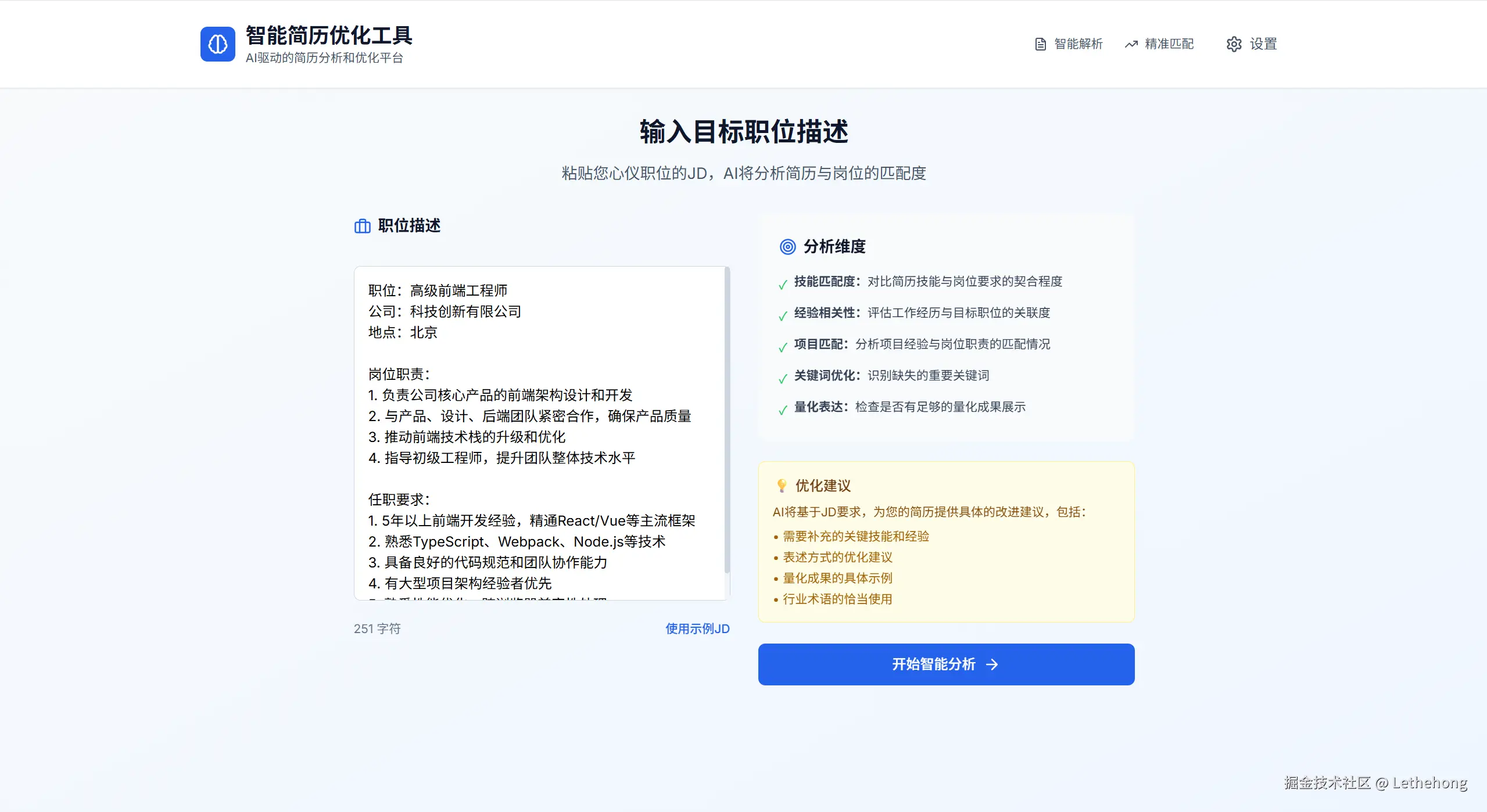 3. 岗位匹配:允许用户粘贴岗位JD进行对比分析