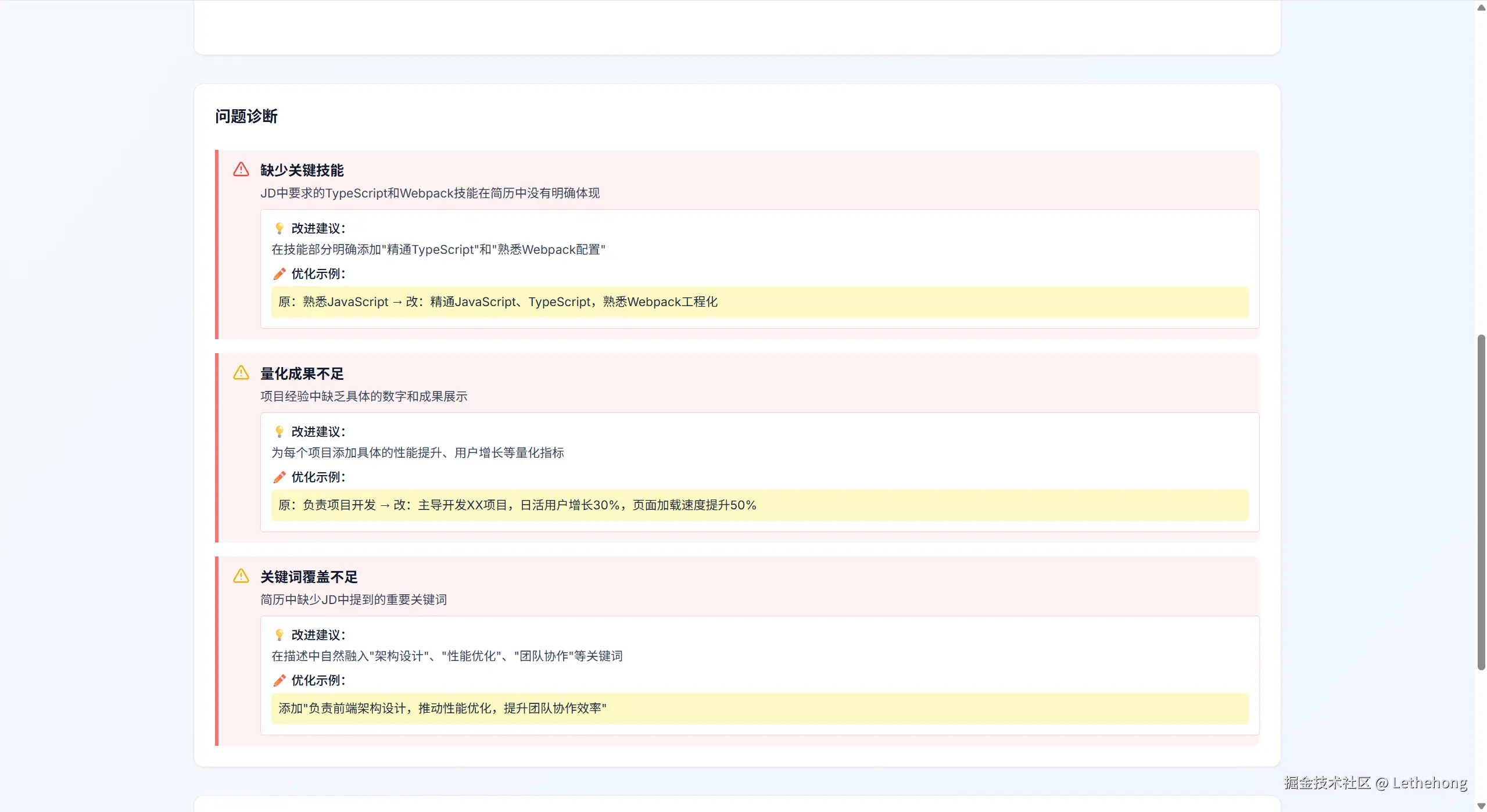 - 给出针对性改进建议并高亮示例