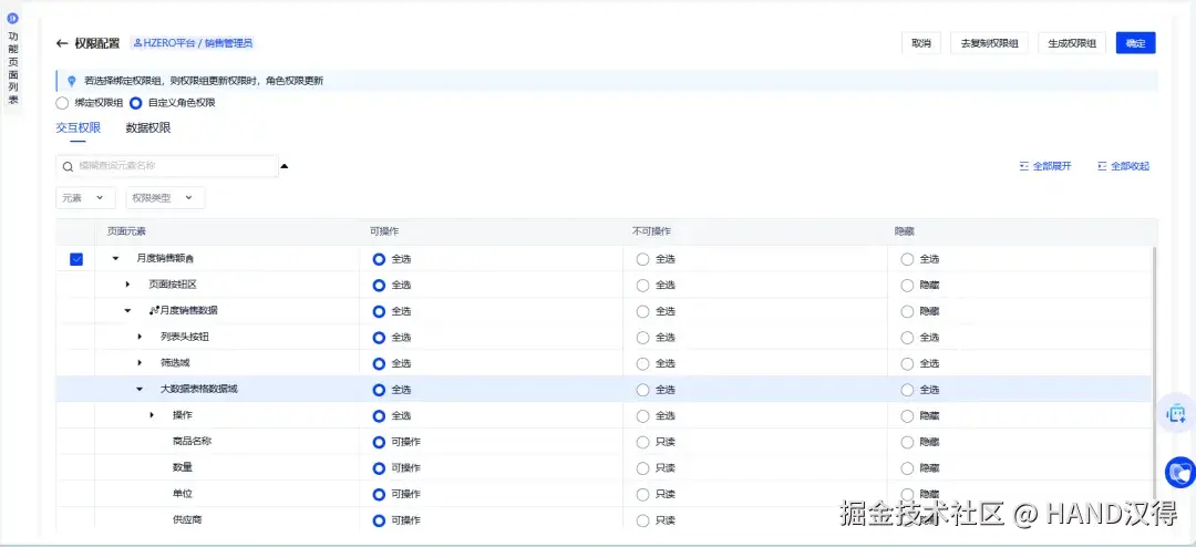 ● 以及在功能页面配置组件的交互权限和数据权限