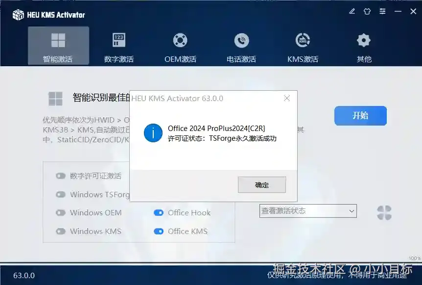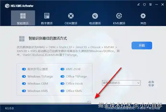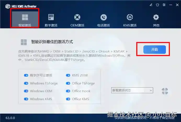 4、点击【智能激活】,点击【开始】