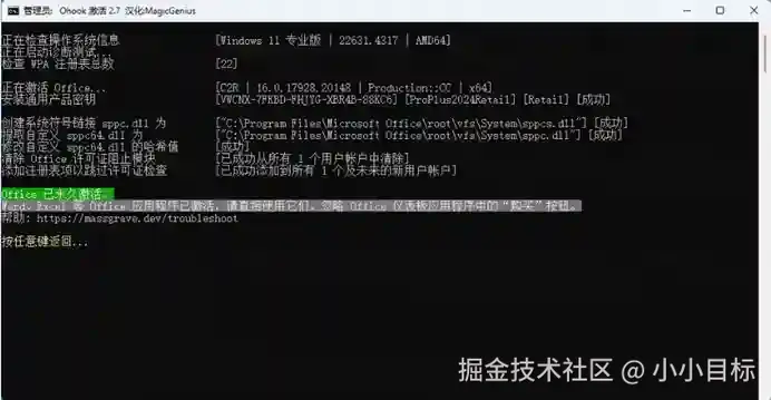 激活Office:我提供了两种激活方式,任选一种激活即可,若方式一无法激活可以尝试使用方式二,**