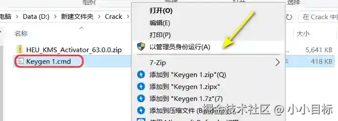 1、鼠标右击【Keygen 1】选择【以管理员身份运行】
