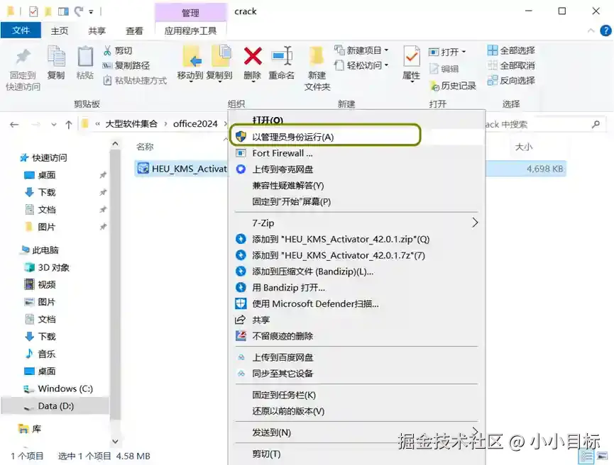 2、右键以管理员运行KMS
