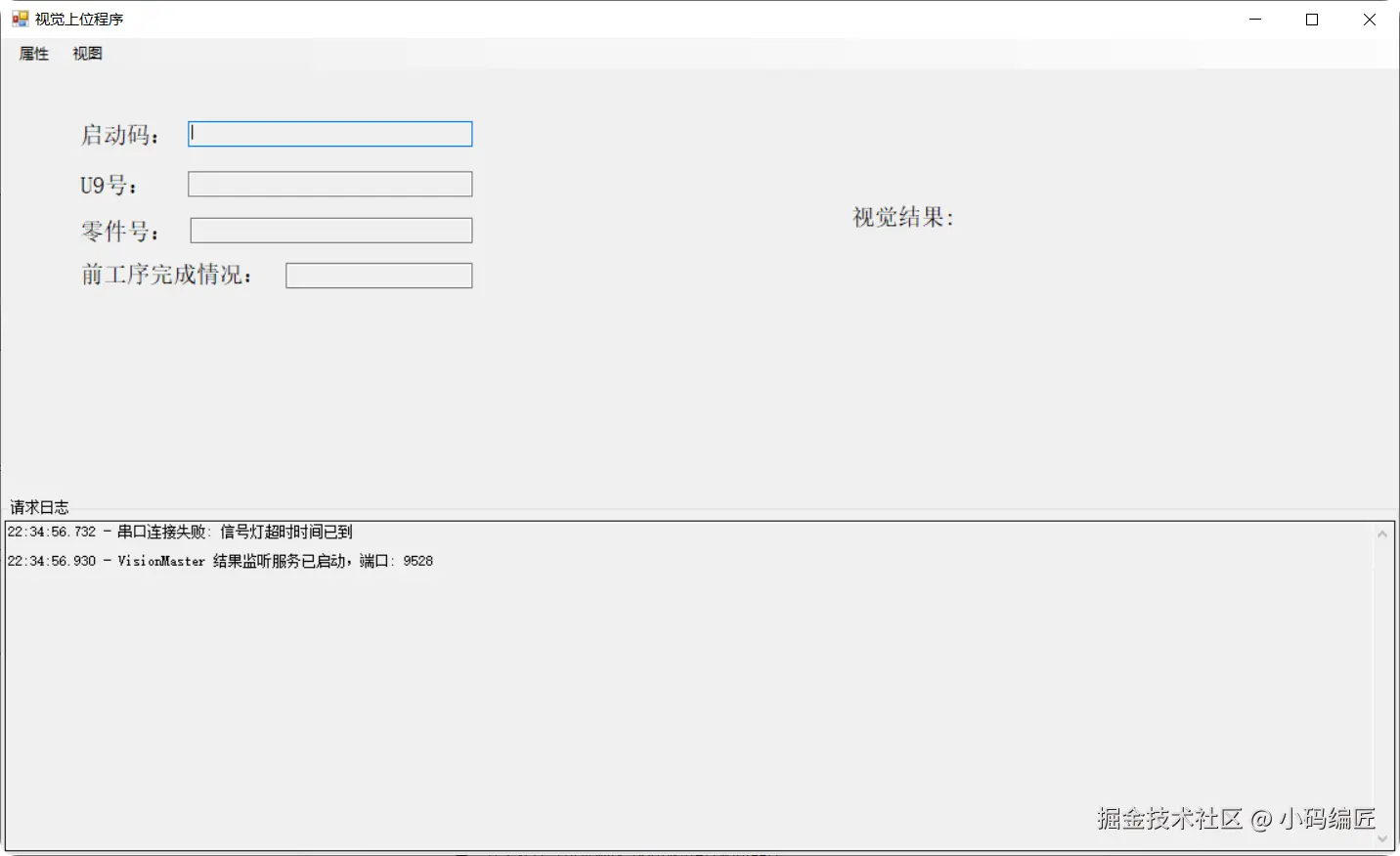 上位机、扫码枪、MES、VisionMaster、串口通信、TCP通信、C#、WinForm、工业自动化、闭环控制、自动化检测系统、TCP/IP网络通信、MES接口查询、日志记录
