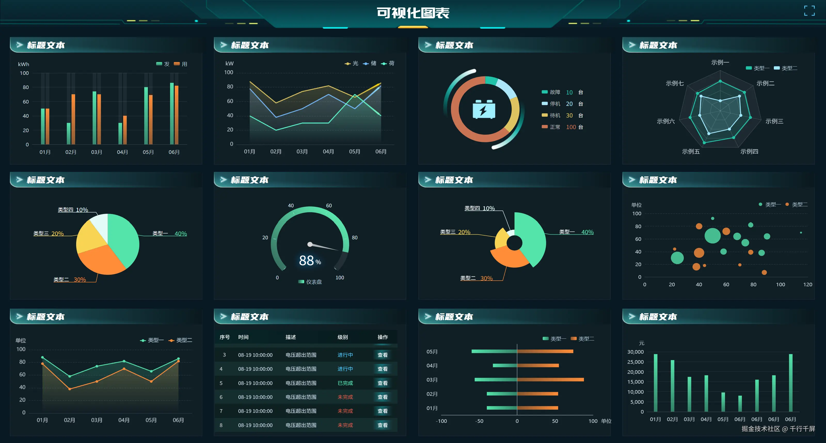 例如,在千行千屏中创建图1中的多图表大屏,仅需选择模板、替换数据源、调整布局三步即可完成,效率提升显著。