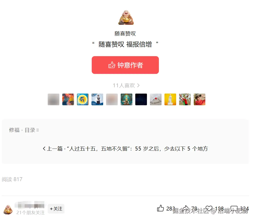 最近有很多朋友来问我有没有小佛陀漫画生成的工作流,这个赛道偏中老年,主要是互动率很高,以我找的一个小佛陀类型的账号为例,这个账号阅读817,点赞218,在看188,留言324,喜欢的人数居然高达11。