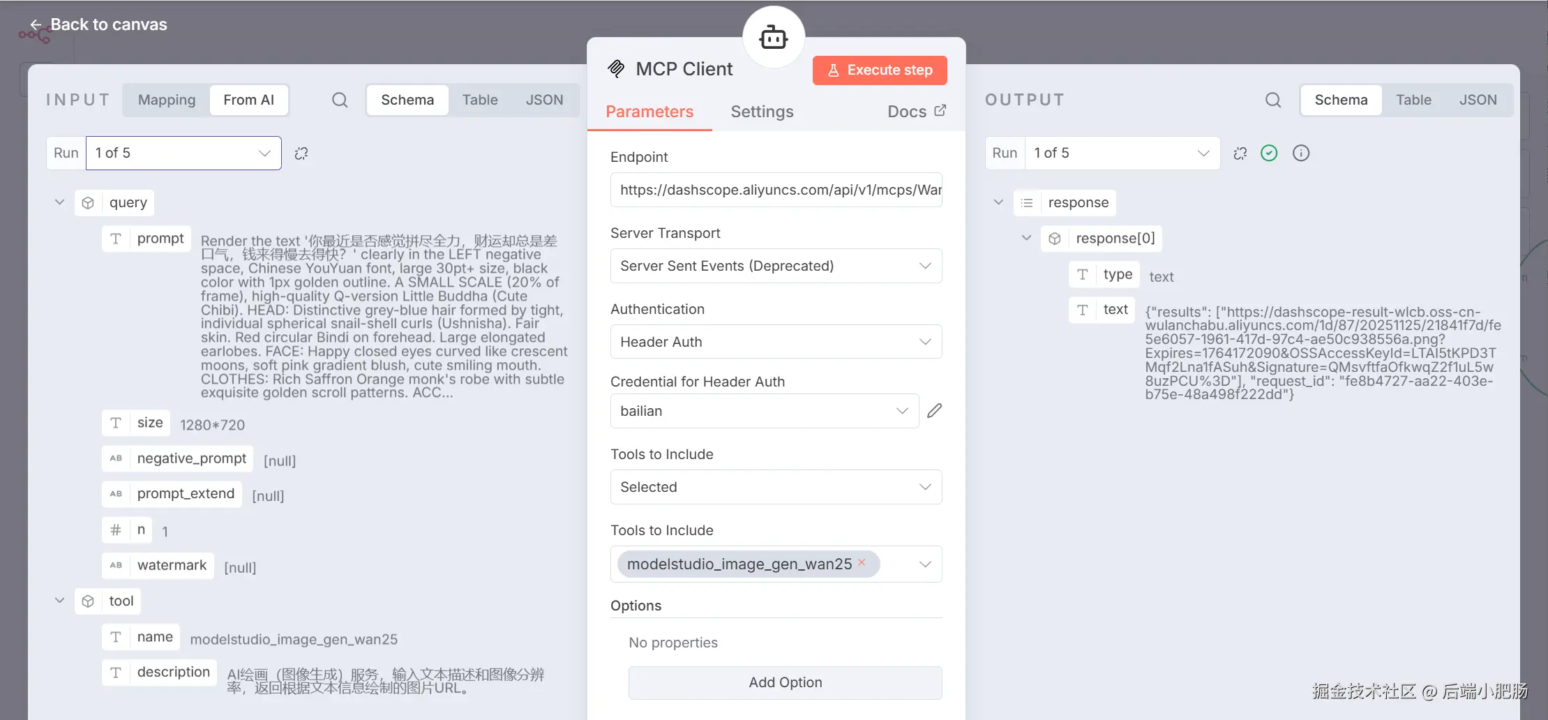 - Tool处点击【+】新增MCP Client Tool用于图片生成。