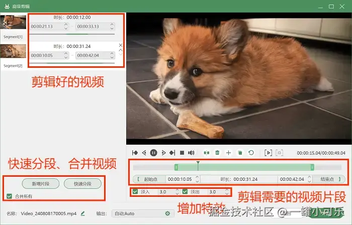 步骤3:录制结束后,还可以选择 “高级剪辑” 工具对录制好的视频进行编辑,比如快速分段视频、增加视频特效等。