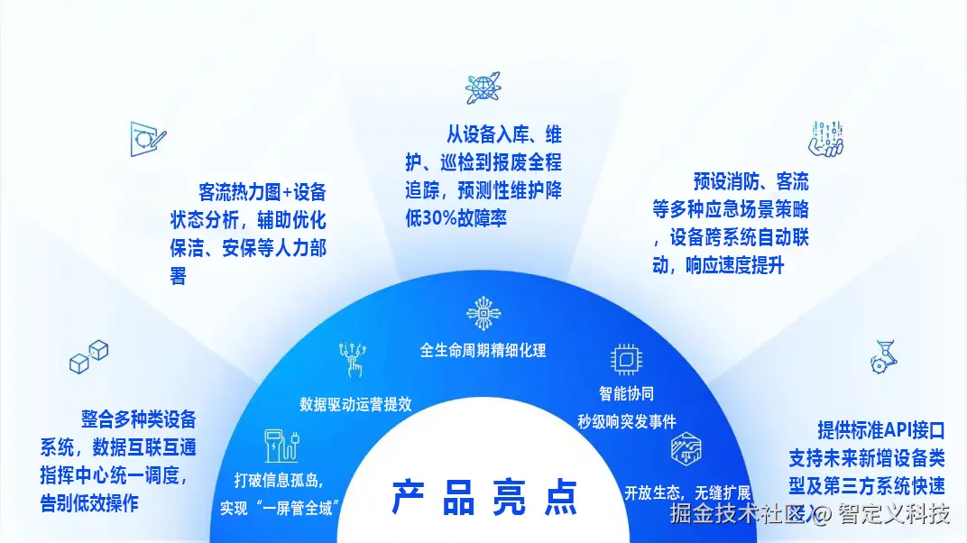 景区设备管理系统是面向现代化智慧景区的物联网中枢平台,通过统一接入、智能协同与全生命周期管理,整合景区内分散的照明、安防、消防、环境、停车等设备系统,打破数据孤岛,实现设备互联互通、集中管控与数据驱动决策。系统以可视化、自动化、智能化为核心,助力景区降低运维成本、提升应急响应效率、优化游客体验,构建安全、高效、可持续的智慧化运营体系。