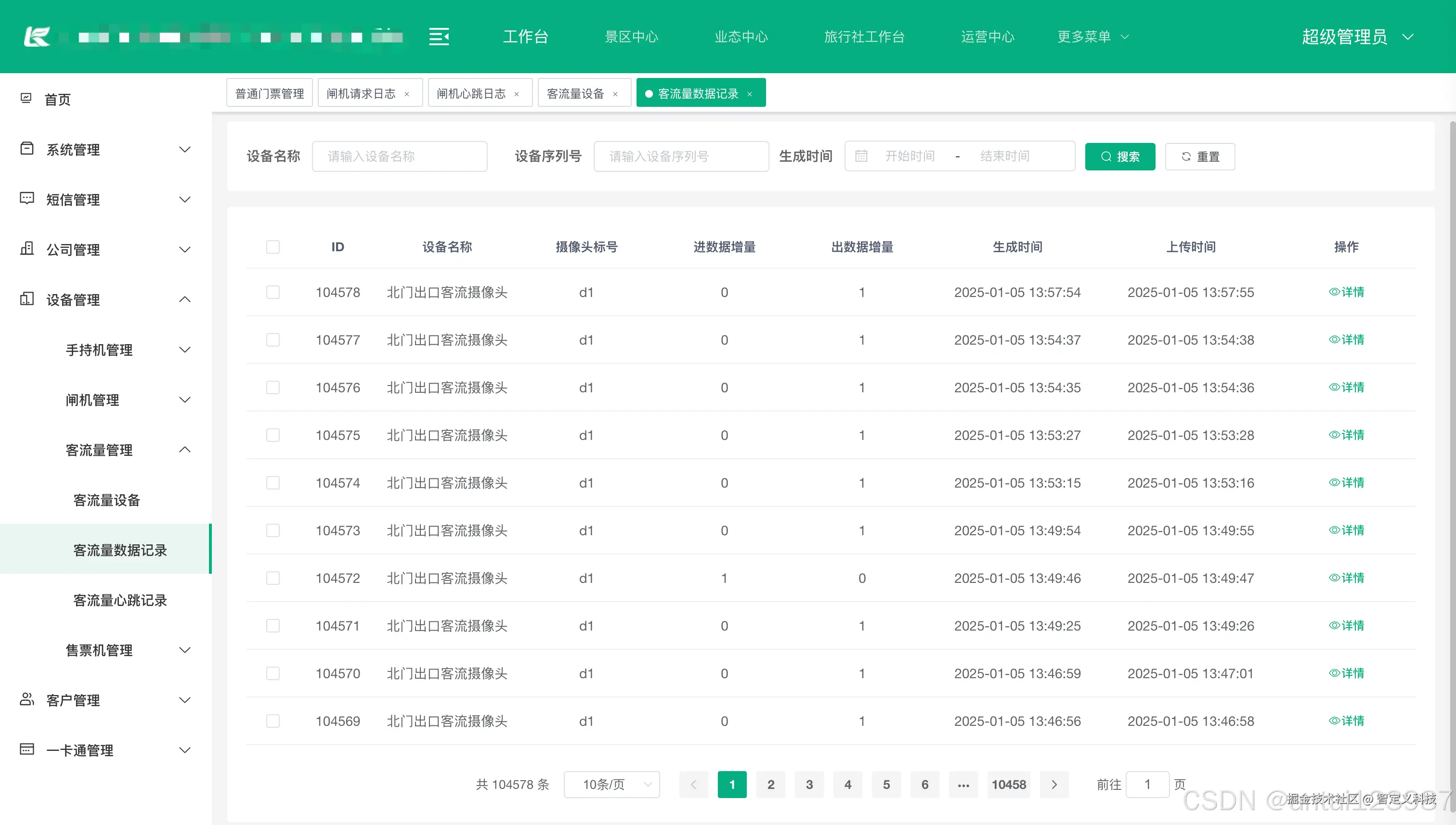 | 设备心跳日志 | 客流一体机设备实时情况日志 |