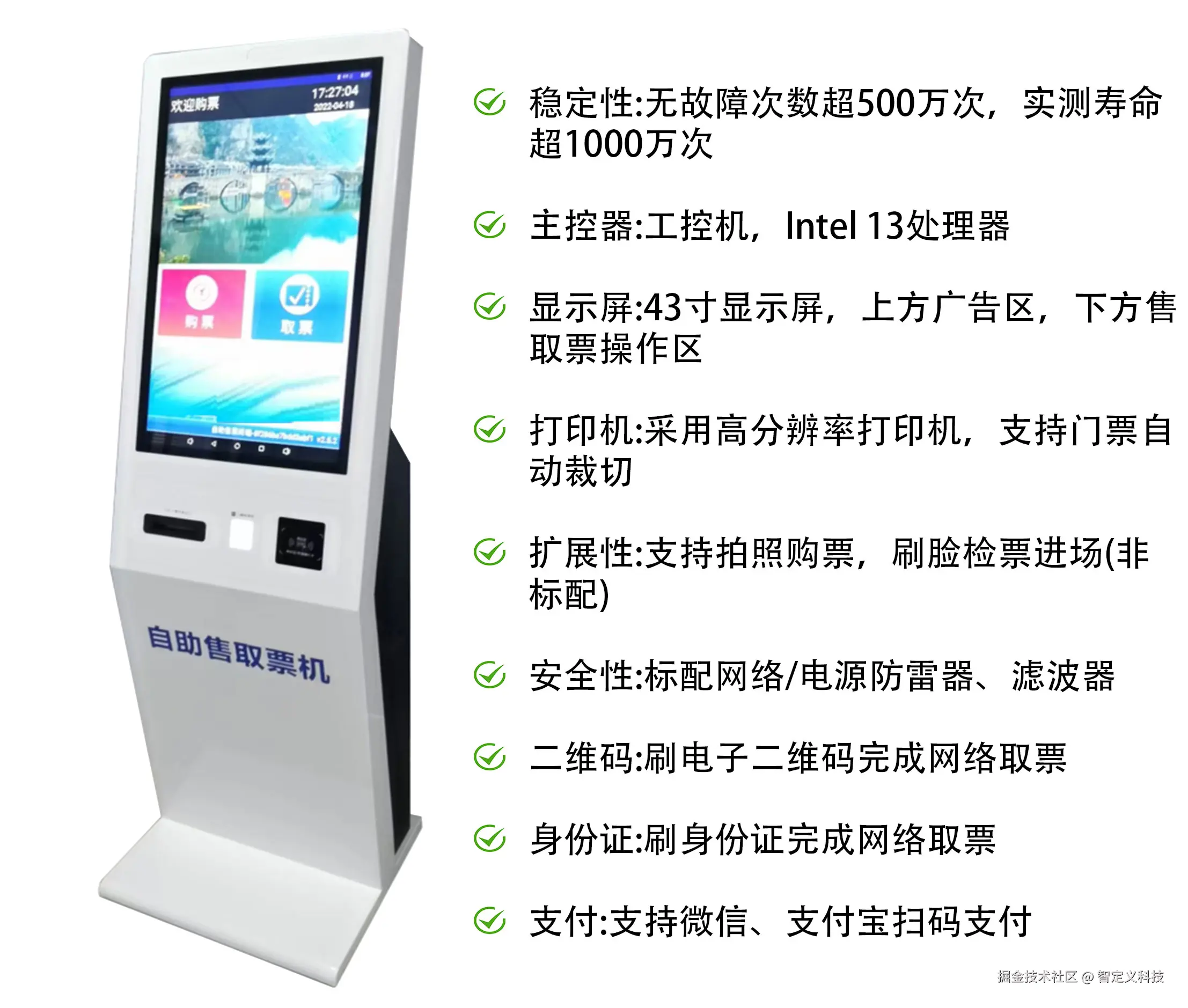 | 自助机管理 | 自助售票机设备 | 终端渠道售卖能力,自助机硬件设备管理(需配套我司相关硬件设备方可使用) |