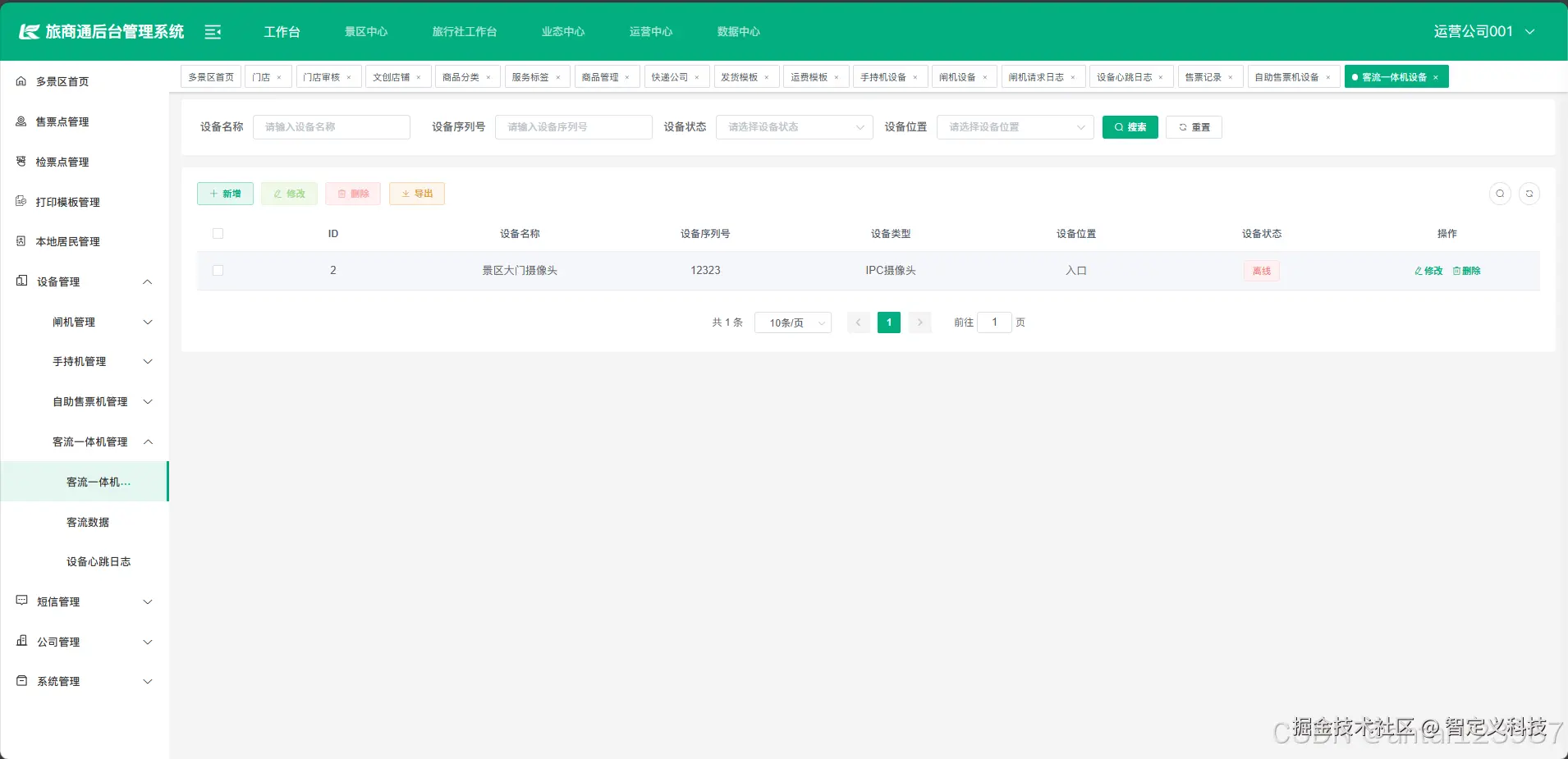 1.3客流一体机管理