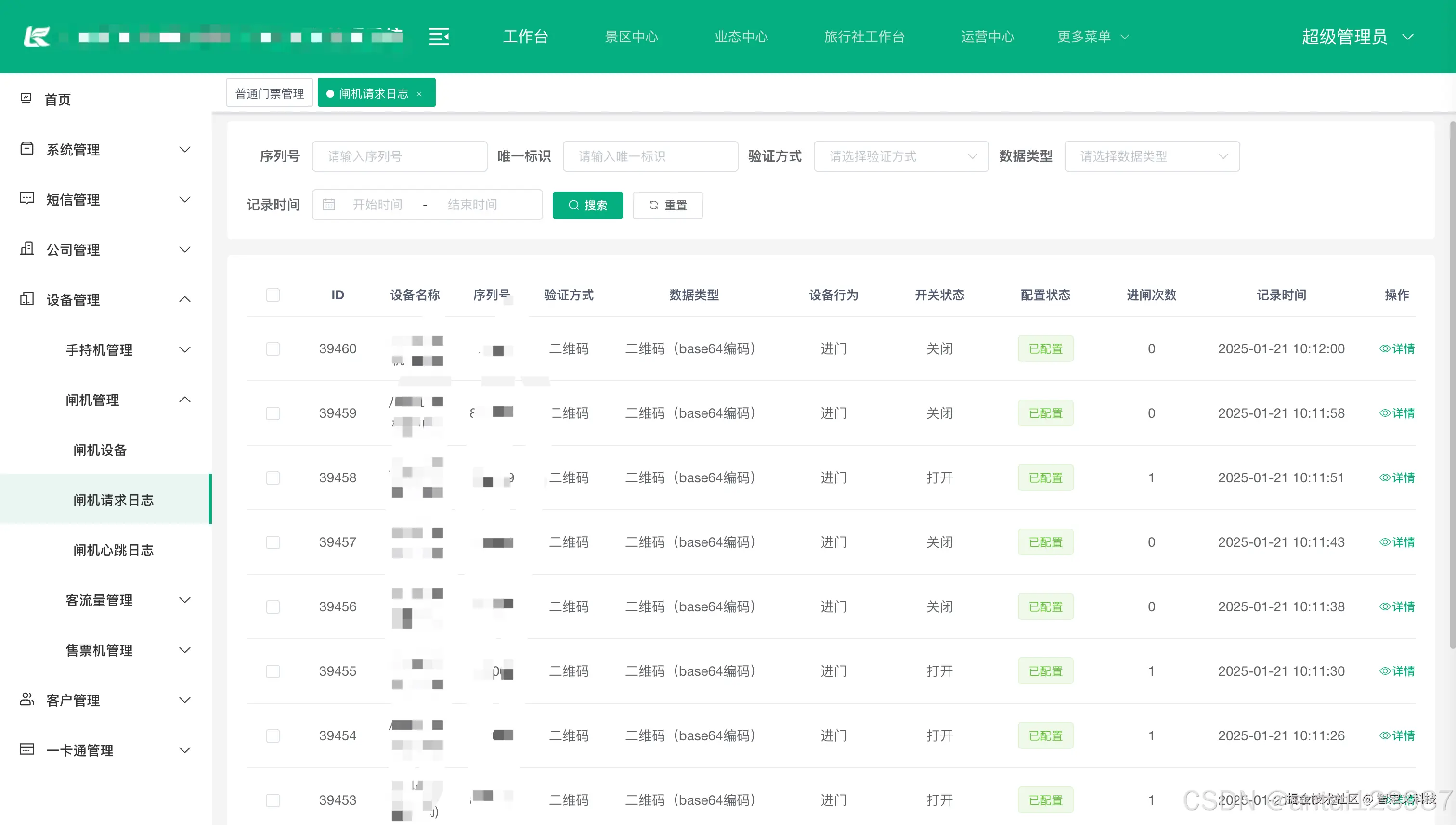 | 闸机请求日志 | 闸机实时请求系统日志 | |