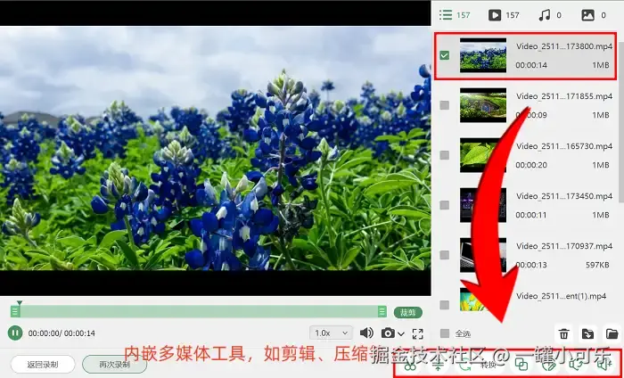 这款电脑自动录屏软件的操作难度不高,同时自带实用功能:实时批注功能可在录制中添加文字、线条、箭头,放大镜功能还能聚焦关键信息;内置简易剪辑工具,录制后无需跳转其他软件,就能完成片段拆分、冗余修剪、简单拼接。