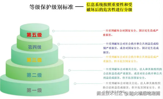 简单来说,就是国家制定的一套网络安全考试大纲,根据信息系统的重要性和被破坏后可能带来的危害程度,将其划分为不同的安全保护等级,并对应不同的保护要求。