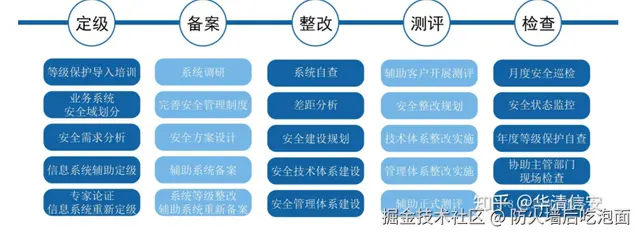 1.定级:企业根据系统的重要性,自主确定系统的保护等级。三级系统需要组织专家进行评审,并报主管部门审核批准。2025年起,所有二级及以上系统需重新备案。