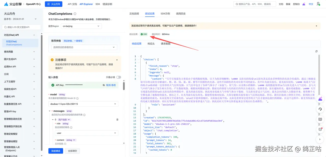 - 这里我建议大家先通过【点击进入】验证模型连通性,提前排除潜在的连接问题,避免后续开发过程中因模型通信异常导致报错。