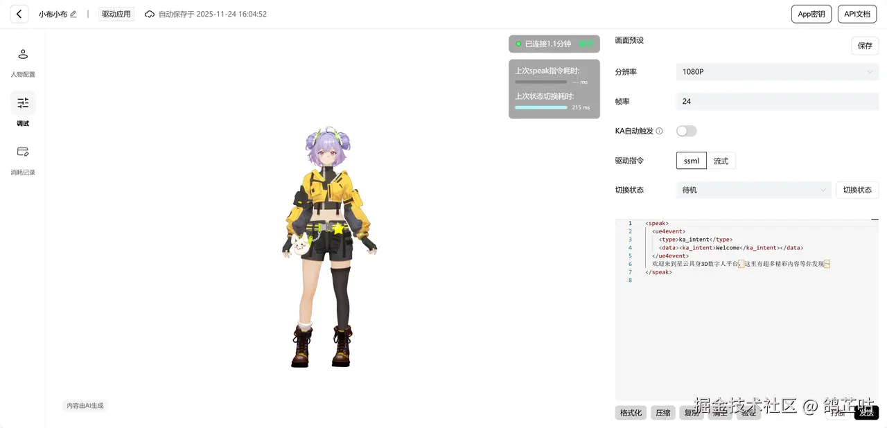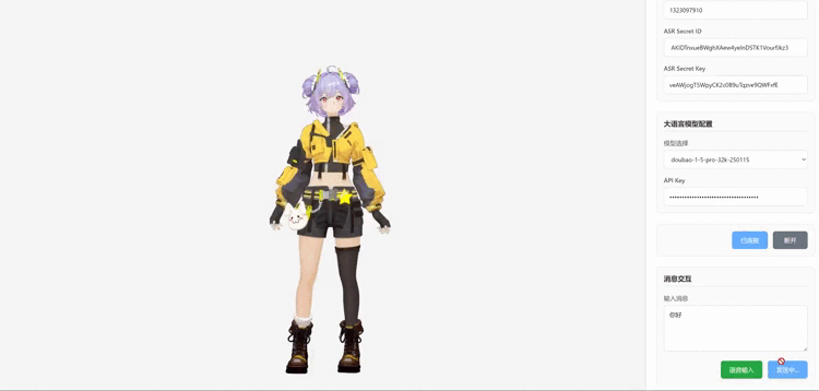 至此,我们已成功完成数字人实时驱动的全部配置。整个过程是不是非常直观简单?接下来,就让我们一起看看可爱的小布在文字交互和语音识别方面的表现吧!