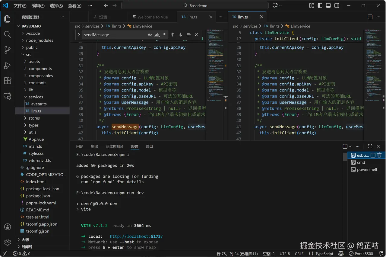 本次实战的数字人实时驱动 Demo,是一个基于 Vue 3 + TypeScript + Vite 技术栈构建的数字人交互演示项目。该项目深度集成了星云数字人 SDK、腾讯云语音识别(ASR)能力及多种大语言模型(LLM),核心模块涵盖数字人 SDK 集成(sdk.ts)、大语言模型集成(llm.ts)、语音识别 ASR 封装(use-asr.ts)、全局状态管理(store.ts)等。