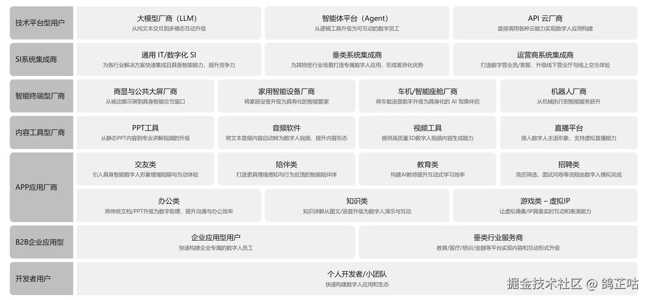 而魔珐星云在行业赋能方面真正做到了,千行百业。不管是搞大模型的厂商、做智能体平台的团队,还是系统集成商;不管是商显大屏、家用智能设备、车机座舱,还是机器人厂商;不管是做 PPT、音频、视频工具的,还是直播平台;不管是做交友、陪伴、教育类 APP 的,还是搞游戏虚拟 IP 的;甚至是企业想做专属数字人员工、垂类行业服务商,还有个人开发者,都能靠它实现从纯文字或单一功能到多模态具身智能的升级。