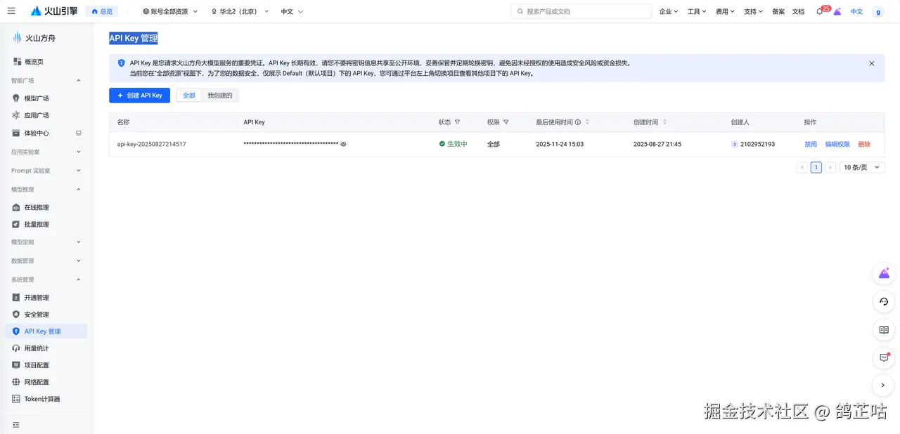 - 然后进入个人的API Key 秘钥管理,进行配置连接即可
