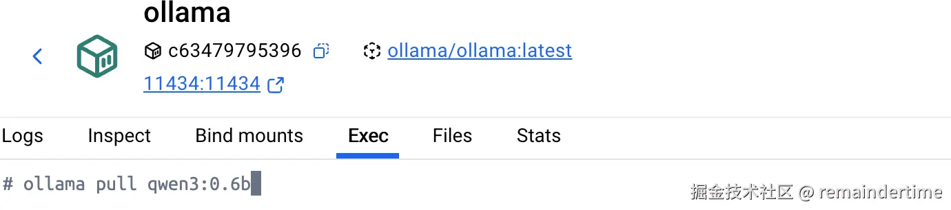 大模型需要进入 ollama 容器中安装,所以前面说 ollama 是大模型的“引擎”呢