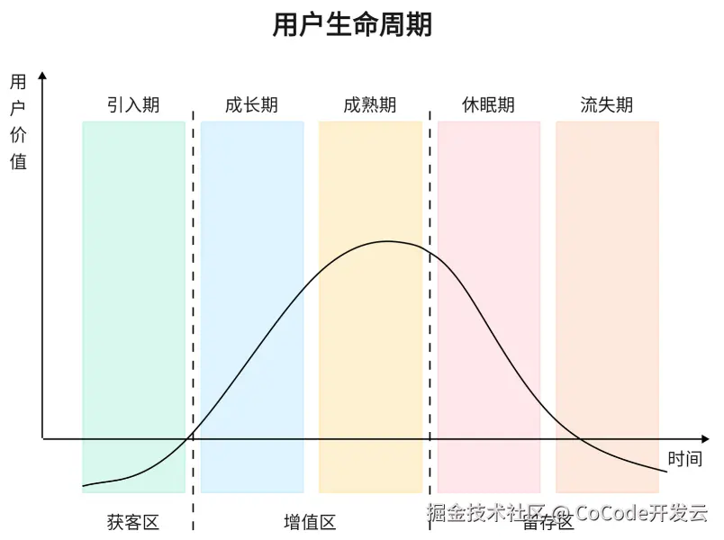 在产品设计时,我们需以用户的整个生命周期为核心进行设计,需将用户需求与商业目标融合到用户的每个阶段:获取-留存-活跃-变现-推荐,用户在持续获得匹配价值的同时也自然完成商业转化。