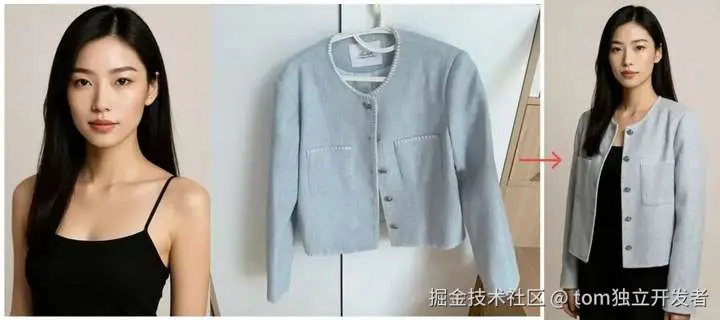 提示词:使用图1(服装)和图2(模特),拍摄一张超逼真的全身时尚照片,模特需穿着该服装。关键合身细节:[T恤/外套]必须自然垂坠于模特身上,贴合其身形,并呈现逼真的褶皱。高保真还原:极其精确地保留图1中的原始面料纹理、颜色和所有标识。无缝融合:通过完美匹配环境光线、色温和阴影方向,将服装与图2无缝衔接。摄影风格:简洁的电商产品图册风格,使用佳能EOS R5相机和50mm f/1.8镜头拍摄,呈现自然专业的视觉效果。