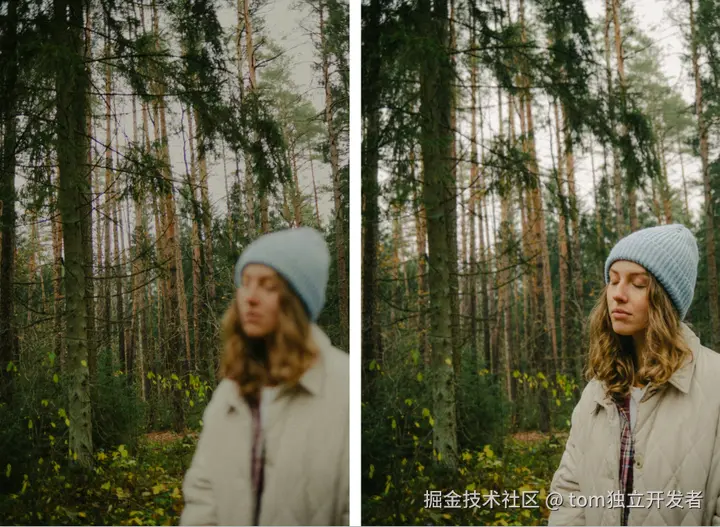 提示词:佳能相机,85mm 定头,生成 1.8F、2.8F、10F、 14F 光圈逐渐变化的效果,温柔大美女作为模特,背景是黄昏之后的城市蓝调时刻