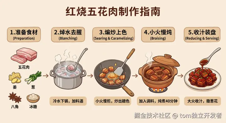 提示词:制作一张信息图,展示如何制作红烧五花肉
