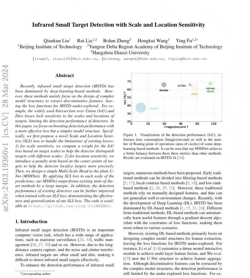 论文名称:Infrared Small Target Detection with Scale and Location Sensitivity —— 具备尺度与位置敏感性的红外小目标检测