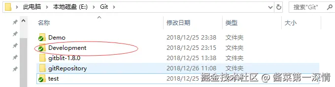 第1步: 首先,请选定一个存放Git项目的目录,这样方便管理. 如: E:\Git,然后在资源管理器中打开: