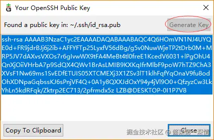 如果没有Key,则点击“Generate Key”生成一个SSH Key: