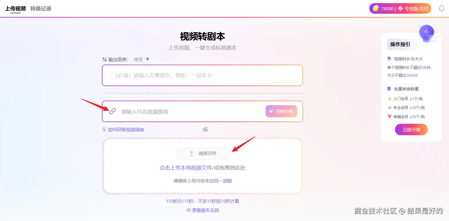 注册登录后,在首页导航栏点击 “AI 拆短片”,进入功能页面后选择 “视频转剧本” 选项,即可进入操作界面。
