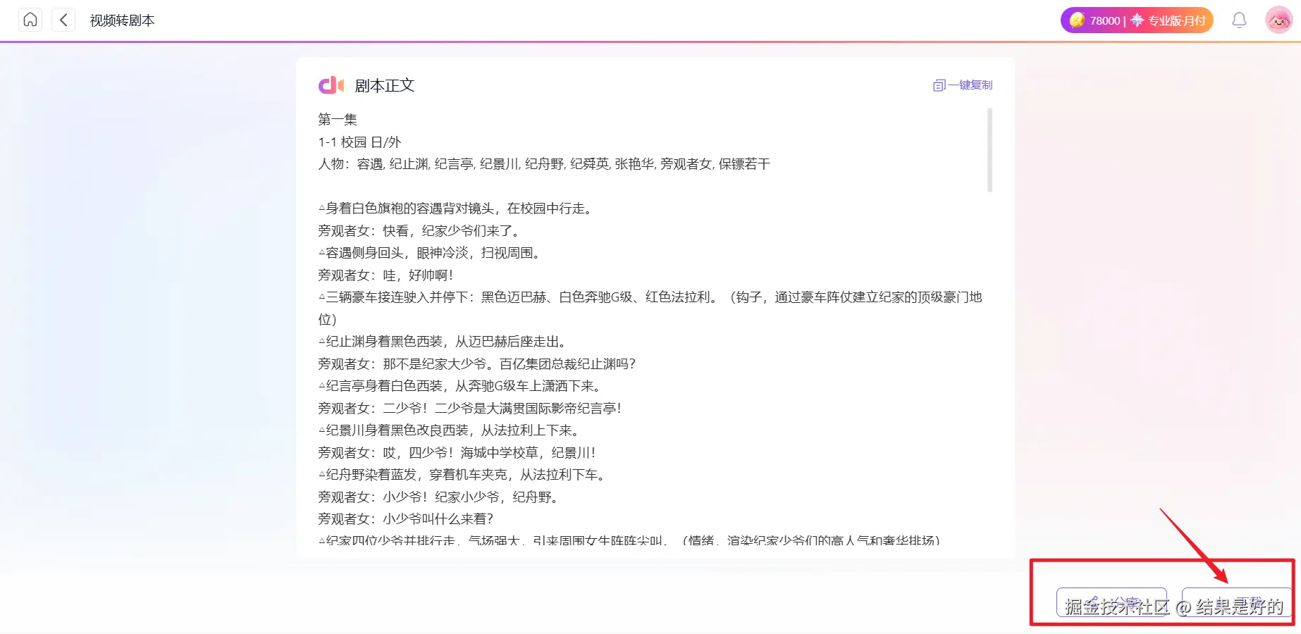 点击“下载剧本”,可以保存到本地,方便以后编辑、打印或分享。