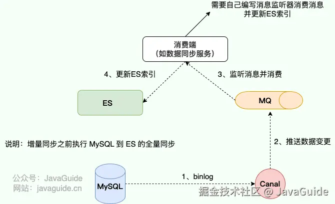 - 异步处理: Canal 将数据变更消息发送到 MQ 后,无需等待 ES 处理完成即可返回,提高 Canal 的吞吐量。