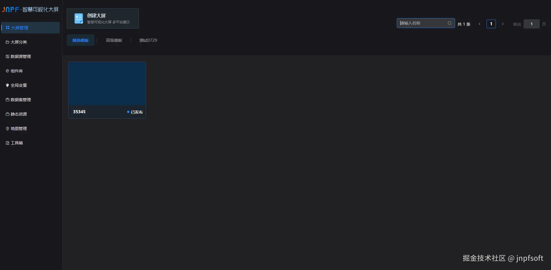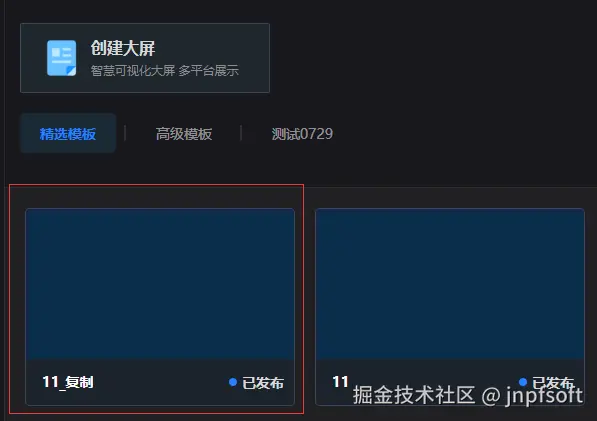 此时回到大屏管理页面,会展示刚刚新建的大屏