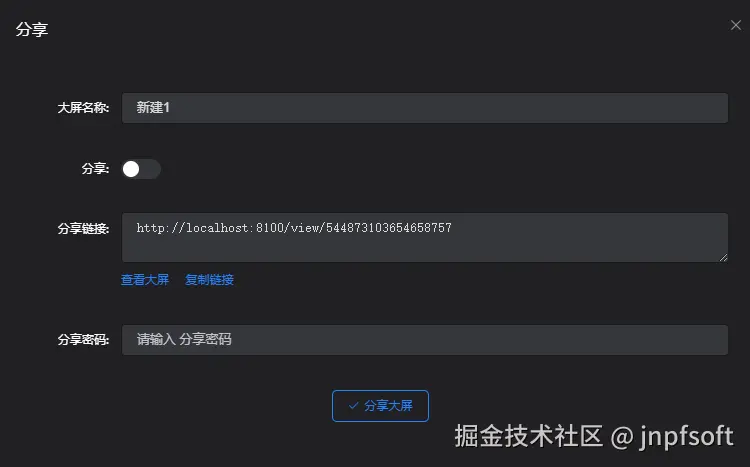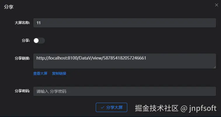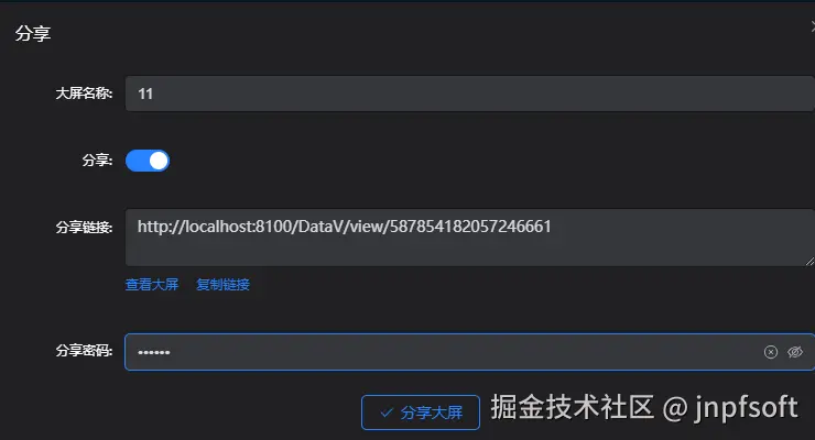 设置分享密码后保存,查看该大屏,需输入密码