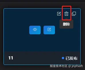鼠标移至模板上方,展示按钮,点击删除按钮