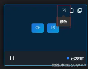 鼠标移至模板上方,展示按钮,点击修改按钮