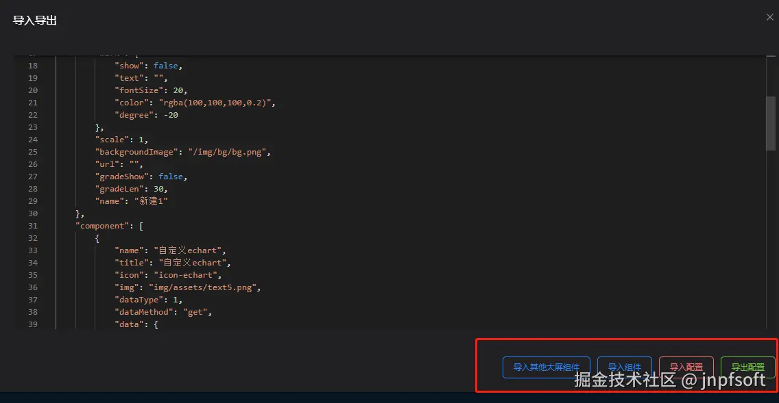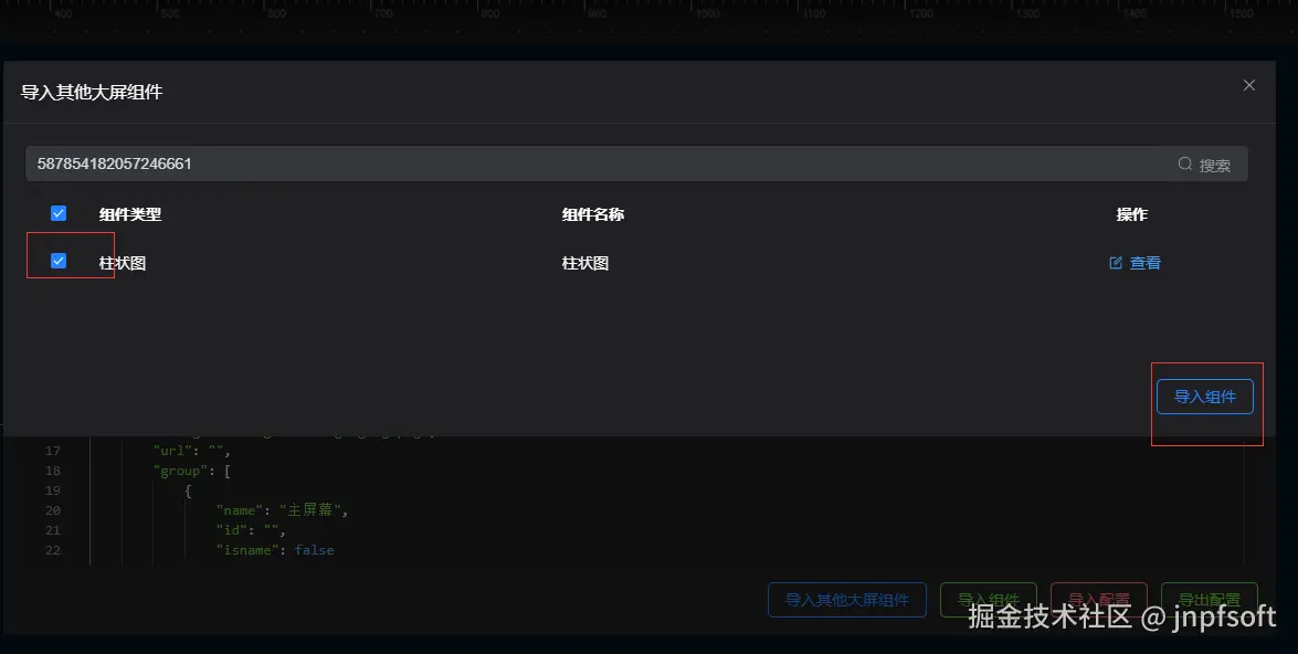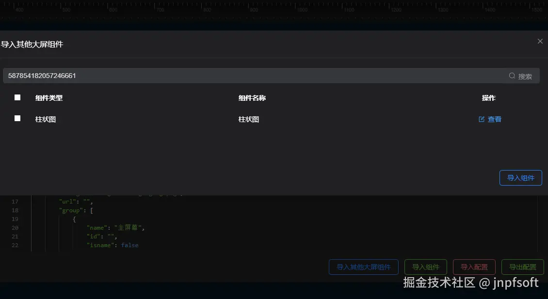可导入其他大屏组组件、导入组件、导入配置、导出配置