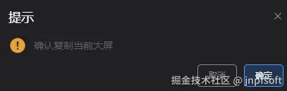 展示复制弹窗,点击取消,取消复制操作,点击确定,成功复制大屏