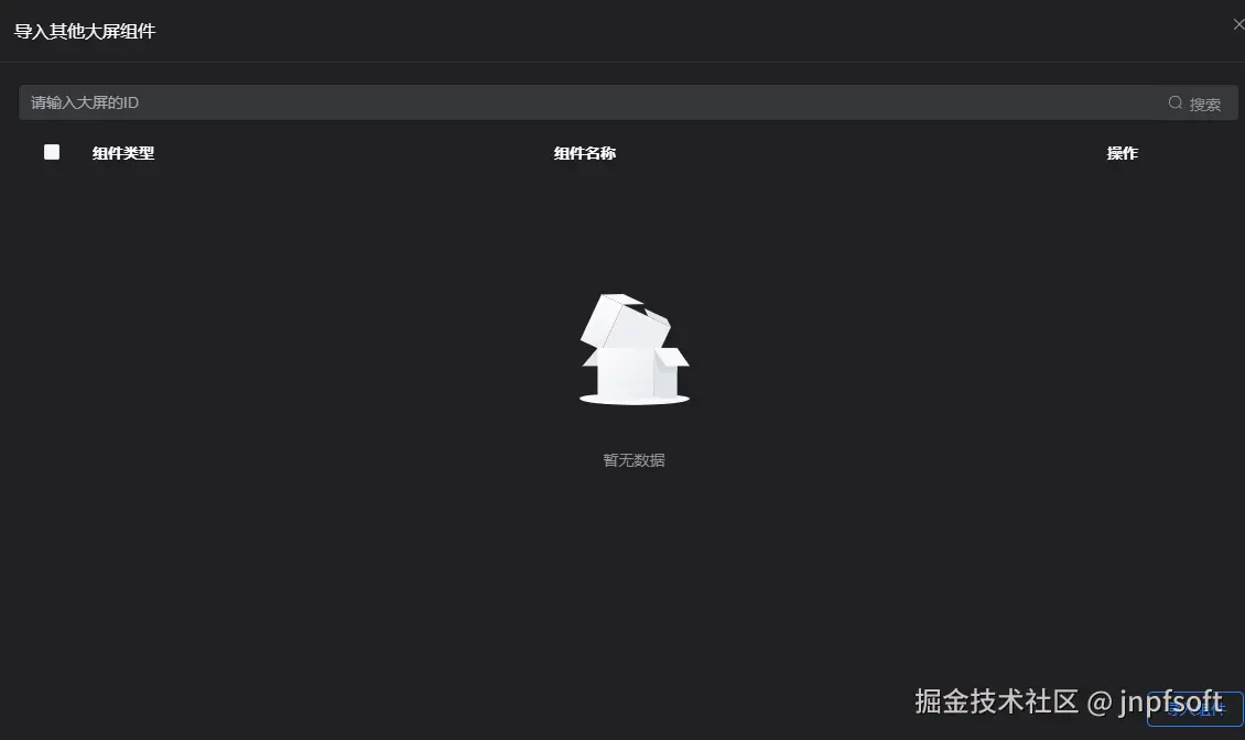 点击导入其他大屏组件,弹窗展示页面