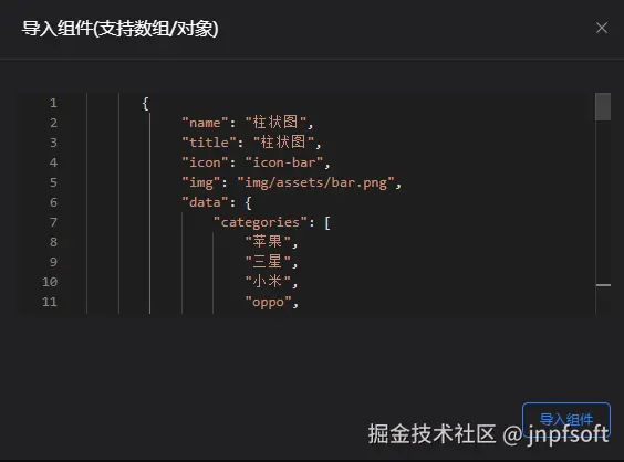 输入正确数据,点击导入组件,成功导入组件