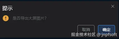 展示导出提示框,点击取消,取消导出图片操作,点击确定,导出图片