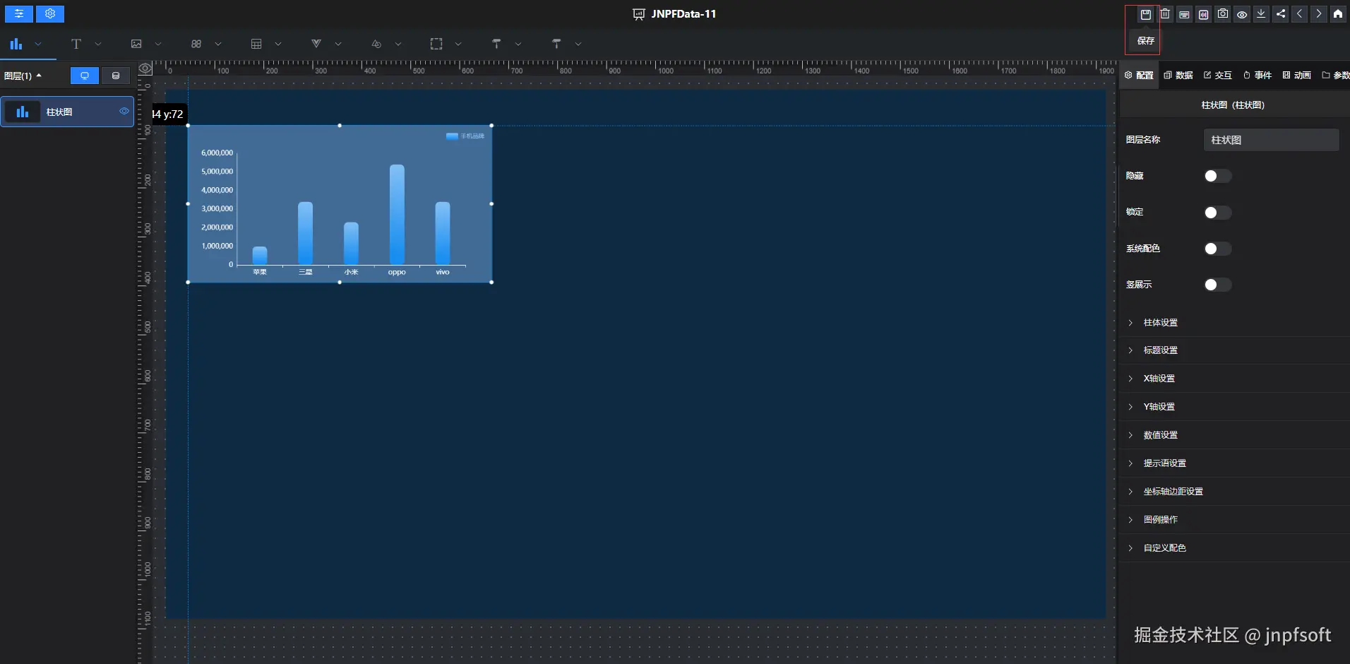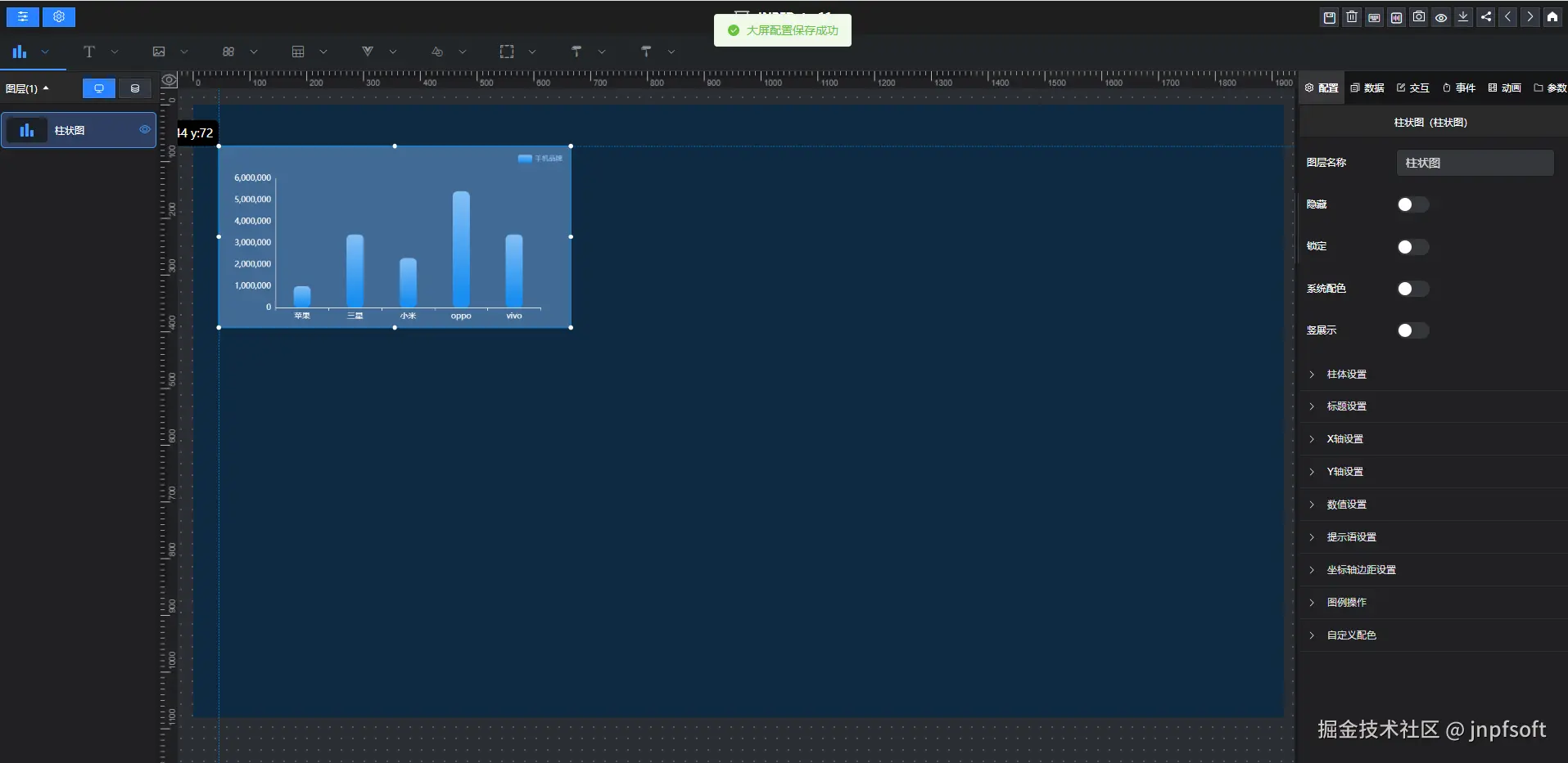 提示保存成功,停留在设计页面,可继续进行大屏设计
