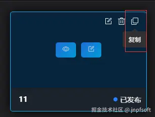 鼠标移至模板上方,展示按钮,点击复制按钮