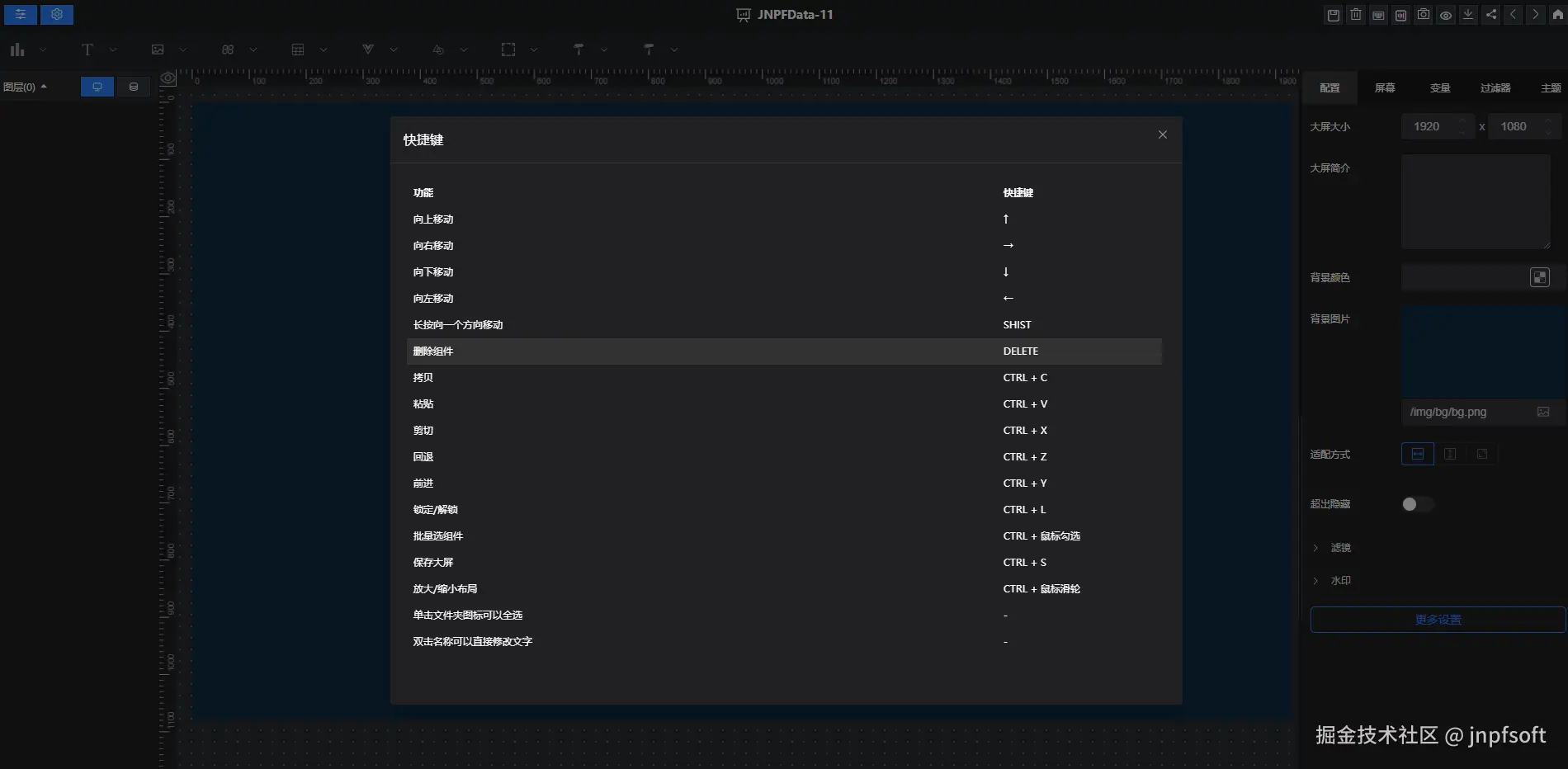 以上就是 JNPF 大屏设计的完整实操指南,从大屏创建、组件拖拽、数据绑定,到全局配置、分享导出,覆盖了指挥决策、成果汇报、业务监控等核心场景需求。快捷键操作、组件导入导出、密码分享等功能,还能进一步提升设计效率和数据安全性。