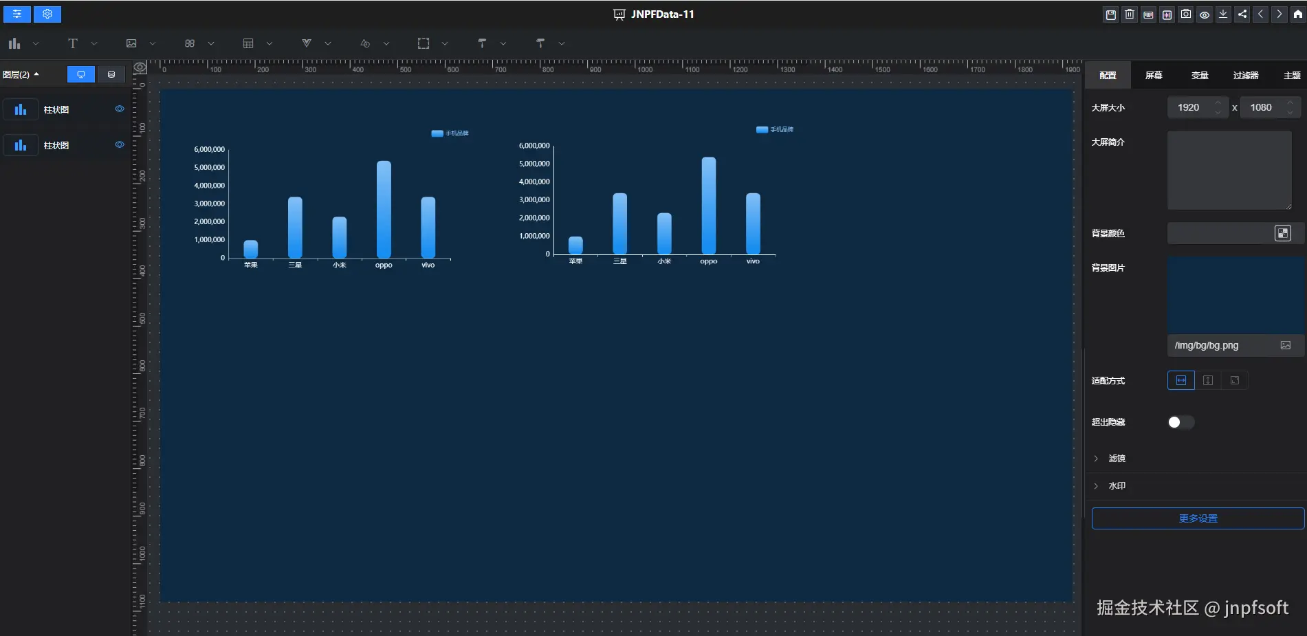 右侧配置为大屏画布配置