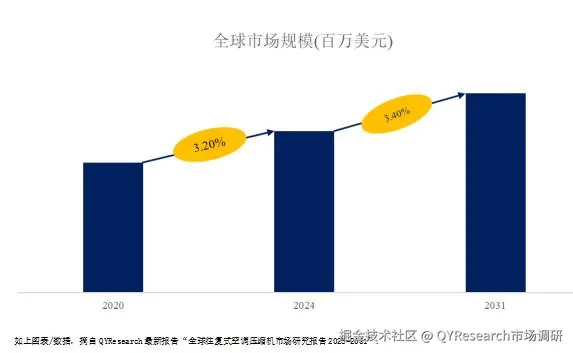 据QYResearch调研团队最新报告“全球往复式空调压缩机市场报告2025-2031”显示,预计2031年全球往复式空调压缩机市场规模将达到42.9亿美元,未来几年年复合增长率CAGR为3.40%。2024年全球往复式空调压缩机产量将达990万个,平均售价为350美元/个,单线产能约5,000个/年,毛利率约为10%-30%。